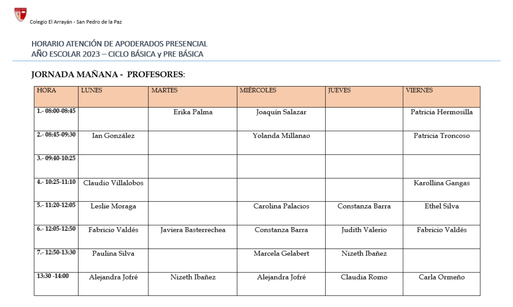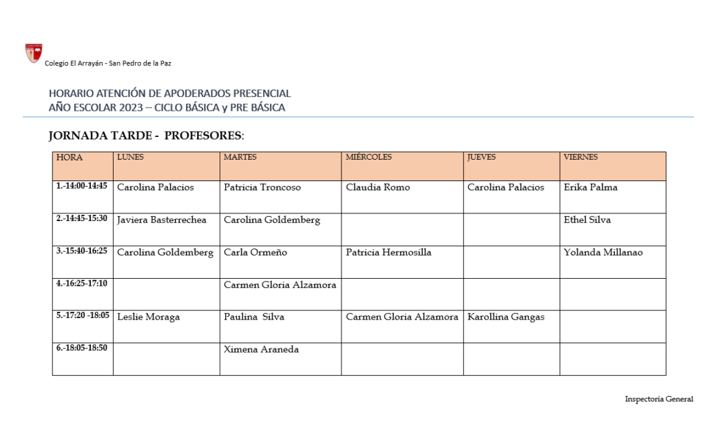 Horarios de Atención para apoderados en las Jornadas de la mañana y tarde