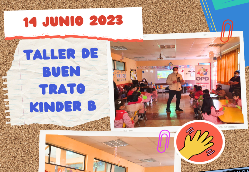 El Miércoles 14 y Jueves 15 nuestros estudiantes más pequeños (Kinder A y Kinder B) junto a las educadoras, participaron de los talleres de buen trato, gestionados por Convivencia Escolar y realizados por OPD, para fomentar y reforzar el buen clima escolar.